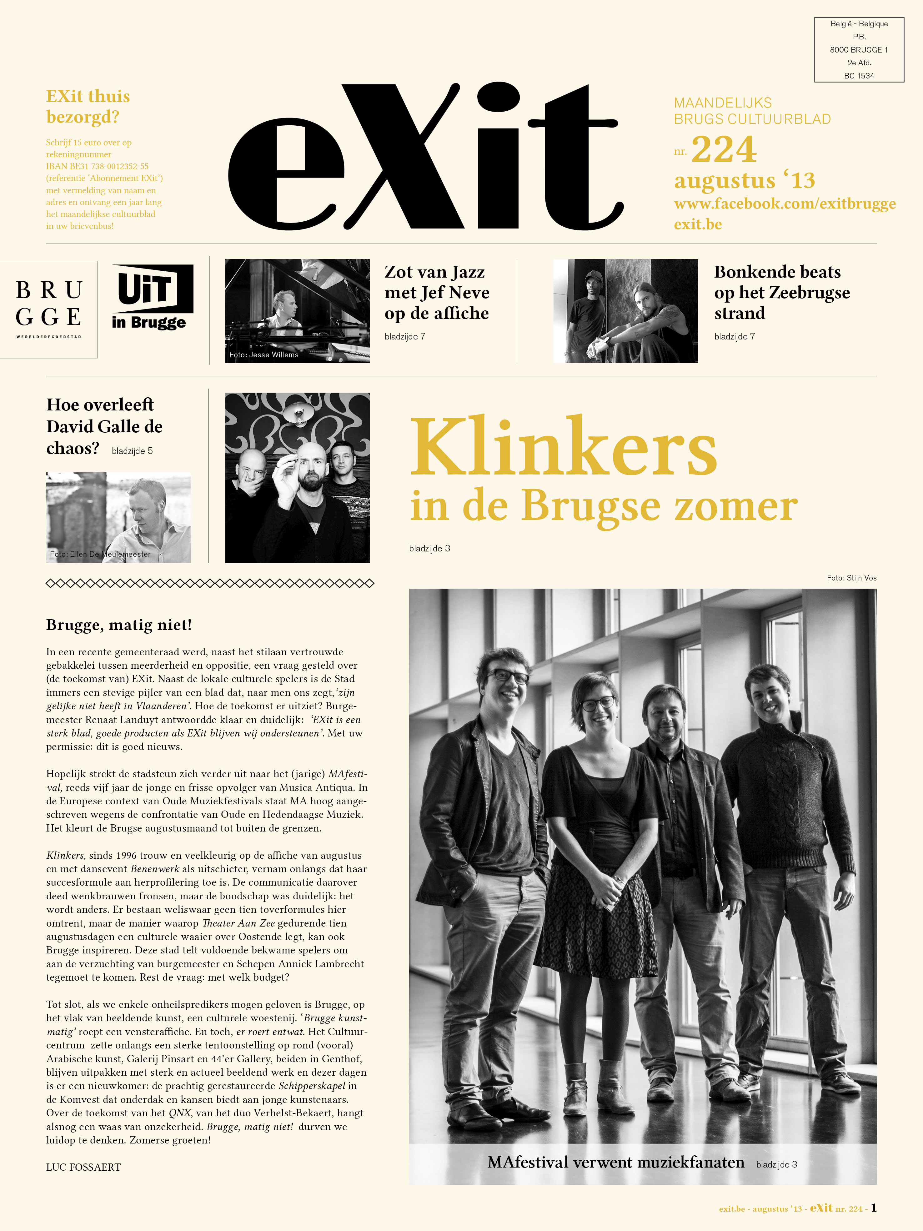 Het goede Klinkersleven neemt een aanvang op vrijdag 26 juli op de Burg met een concert van de Belgische Douglas Firs (check het debuutalbum ‘Shimmer & Glow’) en de Engelsman Billy Bragg (en band) die tijdens zijn optreden nog steeds het evenwicht bewaart tussen protestsongs en romantische ballads. Een dag later (27 juli) zorgt The Souljazz Orchestra voor een explosie van soul, jazz, afro, latin en dub, ideaal om het podium op te warmen voor de Izegemse rappers van ’t Hof Van Commerce. Het weekend daarop (vrijdag 2 augustus) nog een Orchestra, maar dan die van Submotion, goed voor een portie live elektronica. The Brandt Brauer Frick Ensemble sluiten de avond af door technogeluiden uit hun klassieke instrumenten te persen. Op zaterdag 3 augustus nog meer fraais op het Burgpodium met Flying Horseman (de groep van Bert Dockx) en Wovenhand (de groep van David Eugene Edwards – 16 Horsepower).