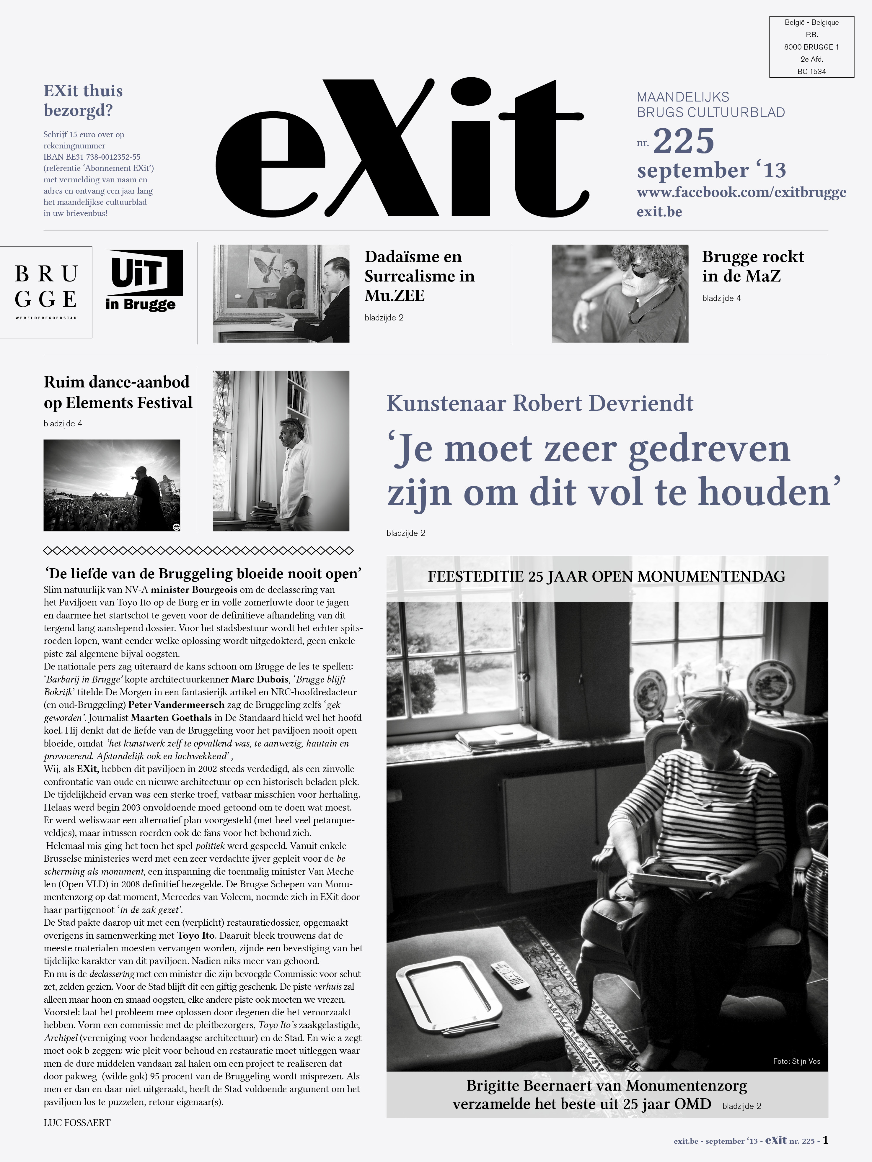 HET VOLLEDIGE ARTIKEL LEEST U IN EXIT SEPTEMBER