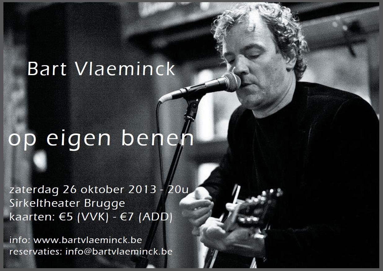 Kaarten kosten €5 in voorverkoop en €7 aan de deur. Kaarten zijn verkrijgbaar bij mij. Reserveren kan via mail info@bartvlaeminck.be