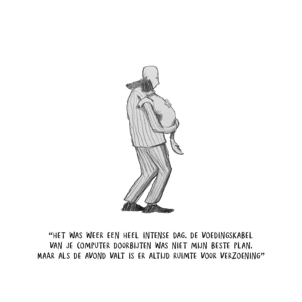 Nick Vermeersch: ‘Zeer zeker, maar er zit een verhaal aan vast. In december vatte ik het plan op om onze viervoeter te vereeuwigen in tekeningetjes met stichtende ondertitels.’