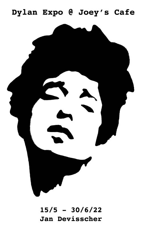 Wat ik wel doe, is tekenen en schilderen wanneer ik luister naar zijn muziek. N.a.v. de 80 (+1)ste verjaardag en de bijbehorende activiteiten in de Stadsschouwburg op 3 en 4 juni georganiseerd door The Tambourine Men loopt mijn Dylan Expo in Joey’s Café (Zilverpand, Brugge) tot 30 juni 2022.”