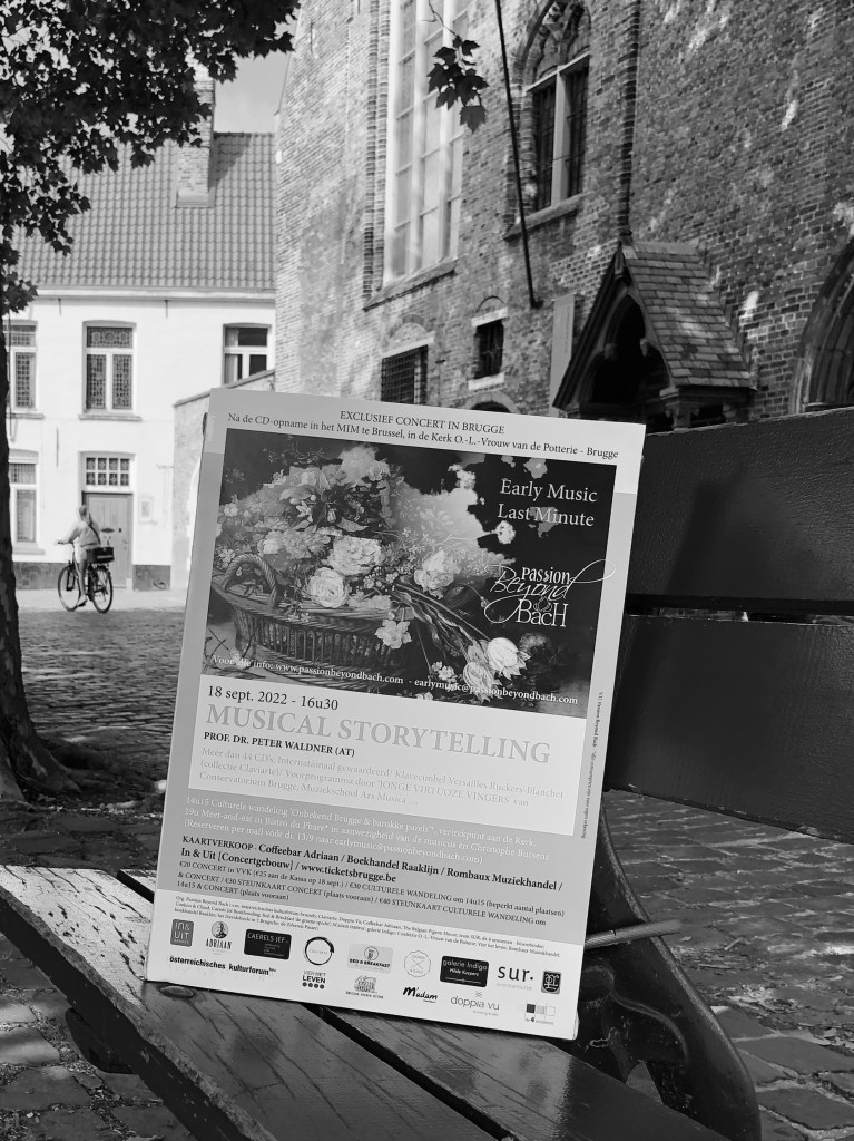 Muziek in een bijzondere context, dat is het doel. Op zondag 18 september (om 16.30 uur) geeft ze podium aan Prof. Dr. Peter Waldner (goed voor 44 cd’s) en zijn programma ‘Musical Storytelling’.De CD-opname hiervan, daags voordien in Brussel, is een wereldpremière met werk van Jacques Champion de Chambonnières, naast vele andere meer bekende musici. Het programma richt zich op Nederlandse en Vlaamse klavecimbelmuziek van rond 1600. Daarnaast komt ook Franse klaviermuziek van de 17de eeuw aan bod. Als extraatje laat Peter Waldner hier in zijn concert in Brugge ook nog werken horen van twee Vlaamse klaviervirtuozen uit de 18de eeuw.