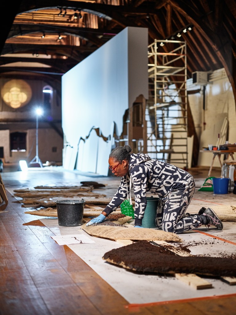 Otobong Nkanga groeide op in Nigeria, maar verhuisde vrij snel naar Europa, richting Parijs en Amsterdam. Recent verwierf ze heel wat prestigieuze prijzen. Ze is een graag geziene gast op de biennales en op de Documenta’s van deze tijd. Haar ‘exposition’ in de kunsthalle van Bregenz in 2021 ‘fut mémorable’. (LF)