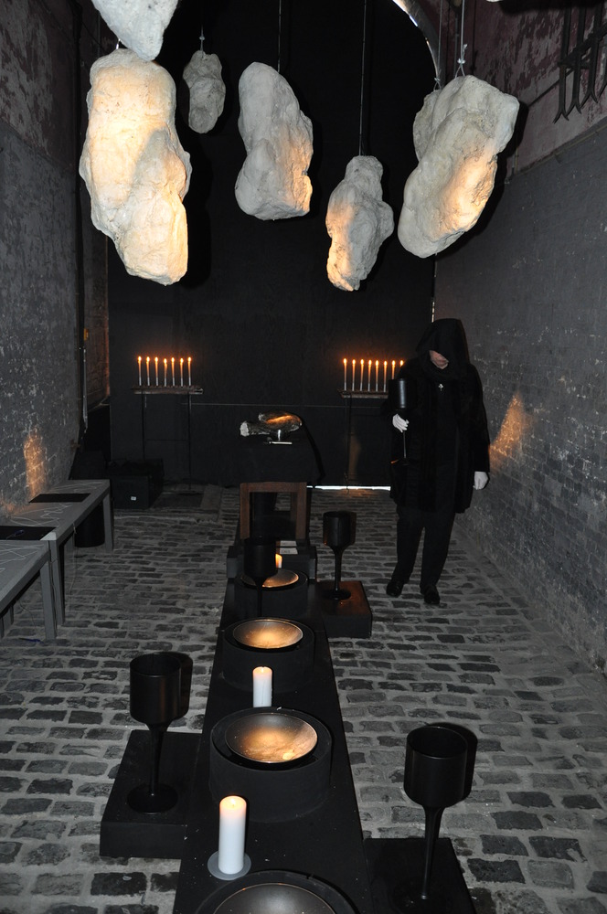 Huis van de druppelende stenen werken Peter Verhelst en Maud Bekaert samen met een acteur en beeldhouwer Johan Tahon. De installatie is gratis te bezichtigen in het brandstraatje (achter de gesloten poort naast de hoofdingang van het Stadhuis) op de Burg in Brugge op dinsdag, donderdag, vrijdag en zaterdag van 12 tot 15 uur. De opening van de installatie start telkens met het ritueel van 12 tot 13 uur. Wie wil, kan het ritueel bijwonen. Daarna blijft de installatie nog twee uur open. QNX2 opent op 20 juni 2012. QNX is een organisatie van